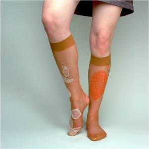 Extra strong tights – are normal tights stronger in the most exposed places with a thin layer of puffy paint. I used screen printing technique to realized my design. This kind of puffy pain need to be heat up with a curtain temperature to pervade tights fibres and protect it from cracking further.