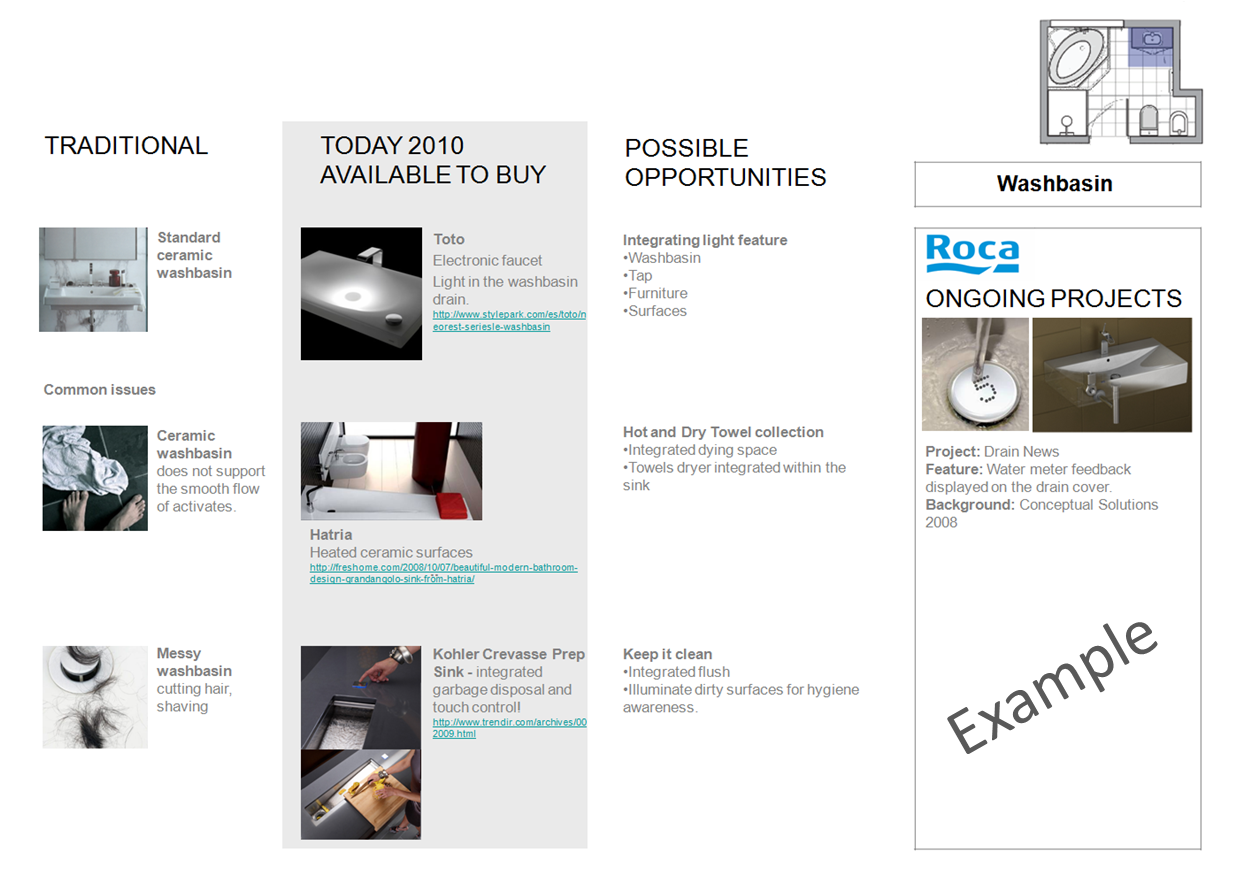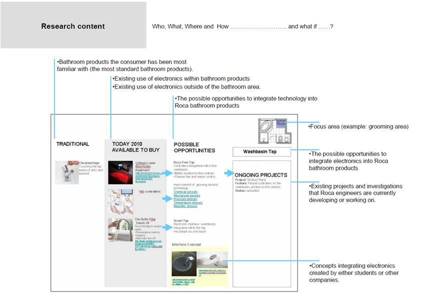 - Responsible for conducting research on use of electronics in the bathroom based on fairs visits, observations, trend reports and interviews with the specialists