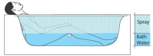 80% less water usage than a traditional bath, through a controlled and directed water system
