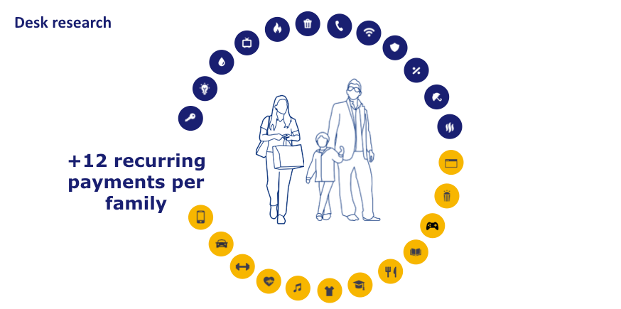 We initiated the process with comprehensive desk research, delving into various types of recurring payments. We then conducted initial interviews, which were carried out by project participants. These interviews were organized and structured into a matrix to identify common themes, enabling us to pinpoint the primary segments for qualitative research. Subsequently, we crafted customer personas and assessed the significance of their concerns, incorporating feedback from both consumers and industry representatives. Throughout this process, we consistently adhered to the Design Thinking approach, guided by the double diamond methodology.